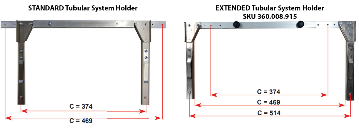 This extended tubular system holder allows the attachment of larger tubular frames, such as the 12" x 15" Mighty Hoop.